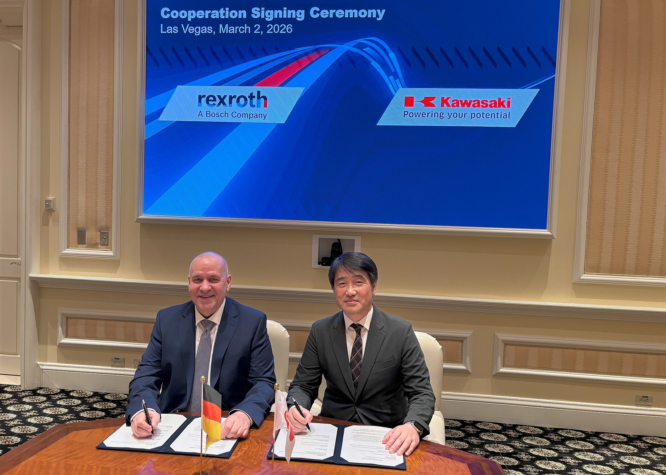 ドイツ・ローア及び日本・神戸 - ボッシュ レックスロスAGと川崎重工業株式会社は、未来の建設現場におけるイノベーションと持続可能性を推進するというビジョンの下、オフハイウェイ機械分野における緊密な協業計画を発表しました。この協業に向けた覚書は、2026年3月2日、米国ネバダ州ラスベガスで開催されるConexpoの前夜に締結されました。計画されている取り組みの詳細は現在未確定で、両社の独占禁止法審査を経ていきます。