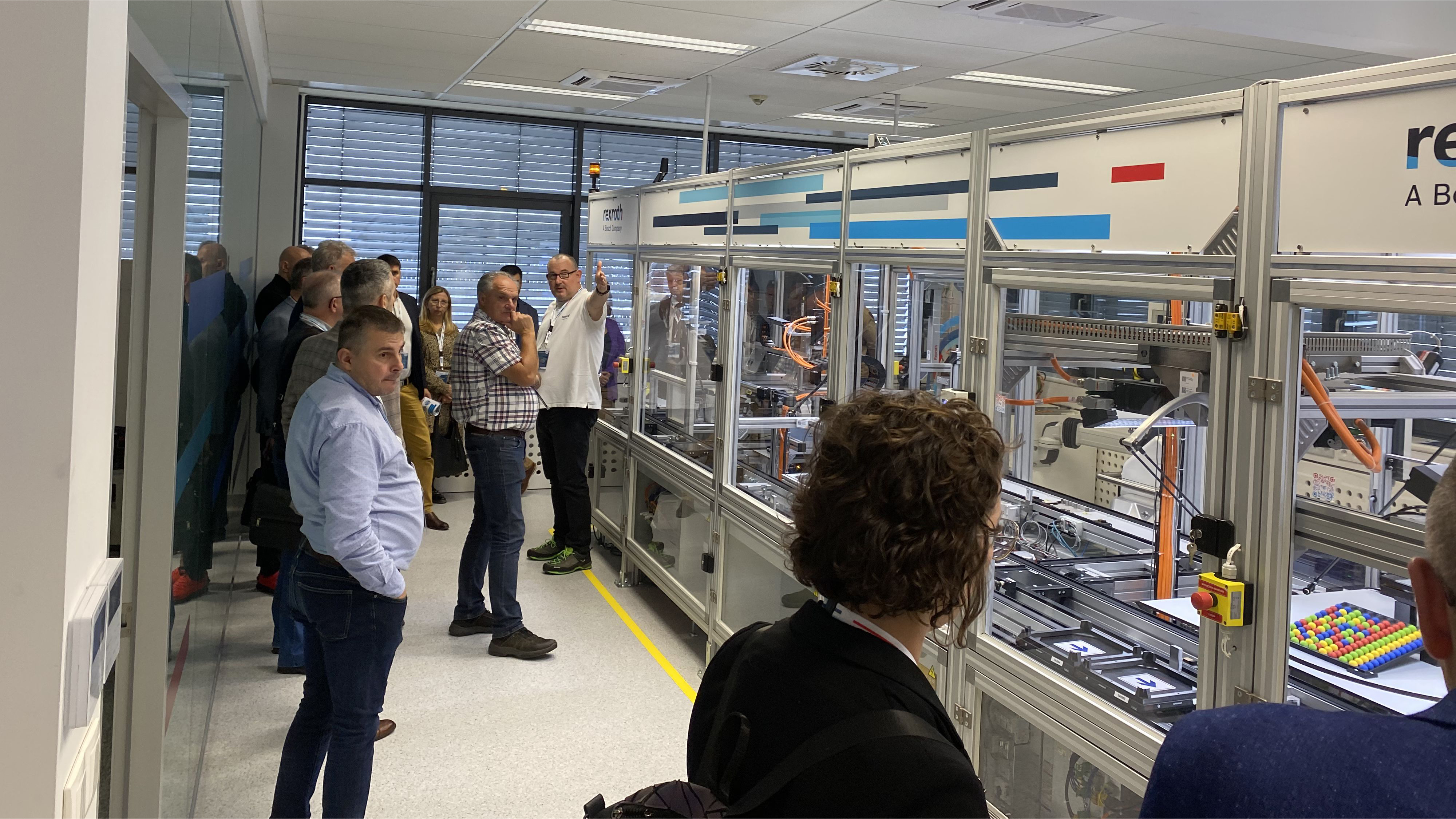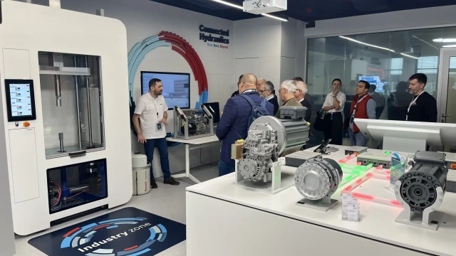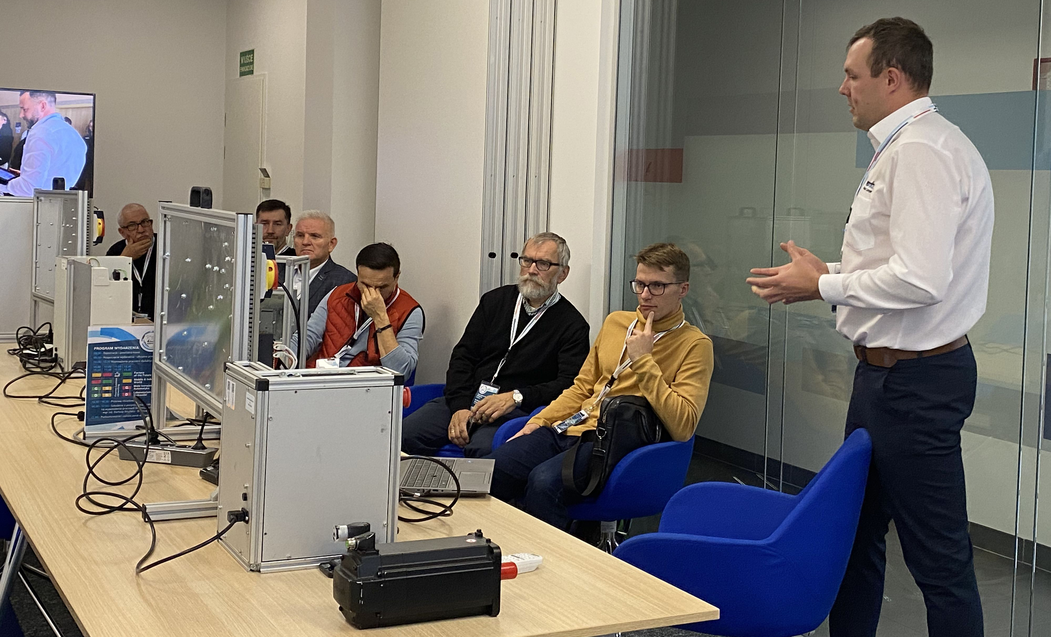 Uczestnicy mieli okazję zwiedzić showroom CU.BE, składający się z dwóch wyjątkowych sal: Factory of the Future Lab i Mobile & Industrial World. Factory of the Future Lab skupia się na prezentacji nowoczesnych rozwiązań w zakresie automatyzacji przemysłowej i przemysłu 4.0, symulując warunki fabryki przyszłości. Odwiedzający mogli zapoznać się z edukacyjną linią produkcyjną wyposażoną w systemy sterowania, różnego rodzaju roboty oraz licznymi innymi technologiami, które kształtują nowoczesne środowisko produkcyjne. Takie kompletne środowisko wraz z oprogramowaniem jesteśmy w stanie przenieść do pracowni dydaktycznej w szkole czy na uczelni technicznej. Z kolei Mobile & Industrial World koncentruje się na rozwiązaniach mobilnych i aplikacjach przemysłowych oraz efektywności energetycznej w przemyśle. Tutaj oprócz nowości w dziedzinie hydrauliki mobilnej czy przemysłowej uwagę przykuwały małe trenażery z elektroniki mobilnej, możliwe do wykorzystania nawet w małych salach.